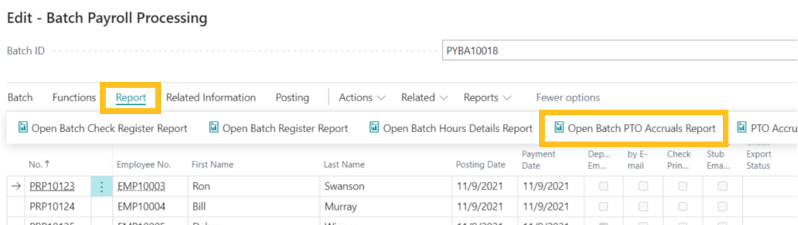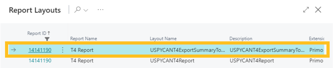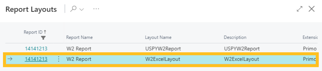 À partir de cette version, vous pouvez accéder aux vues Excel T4 et W2 en utilisant les dispositions de rapport disponibles dans Primo Payday