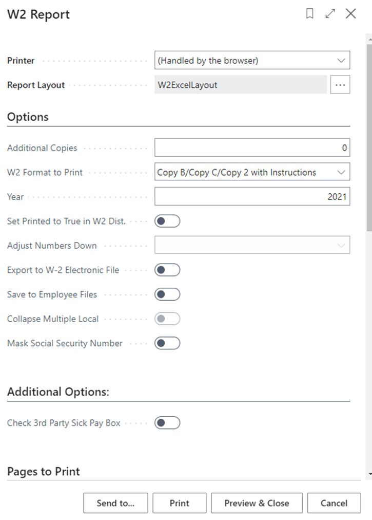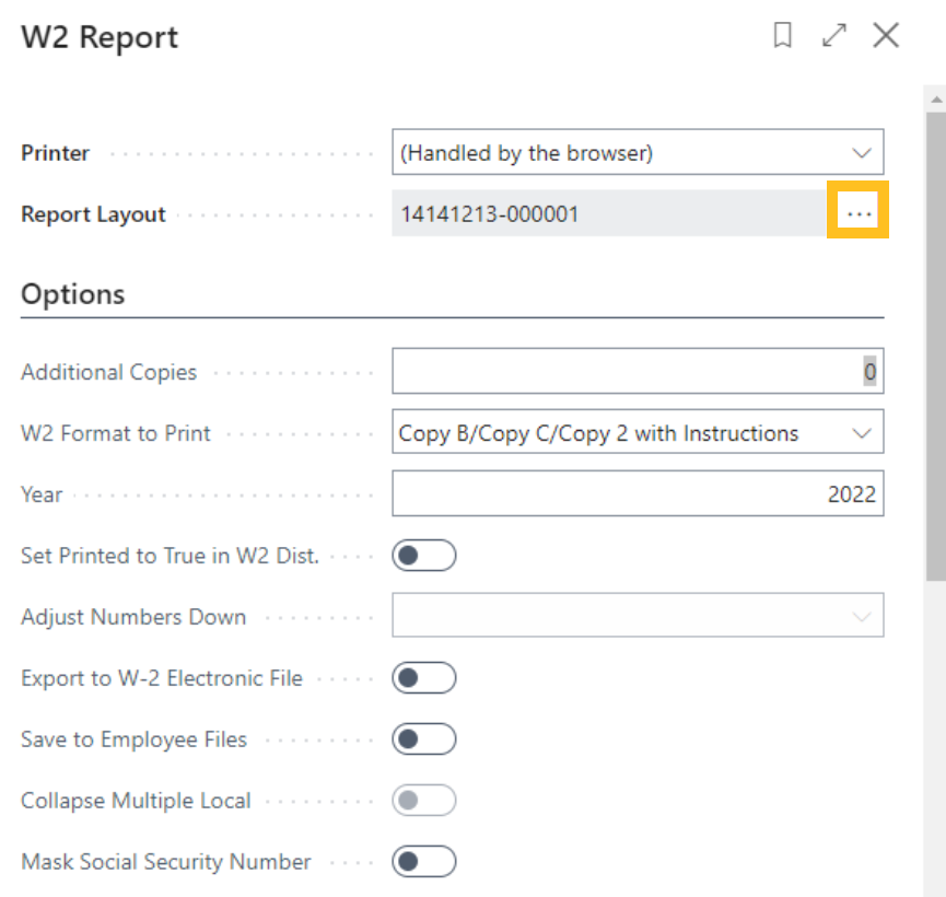 Sélectionnez la case à cocher Disposition Excel W2 disposition du rapport.