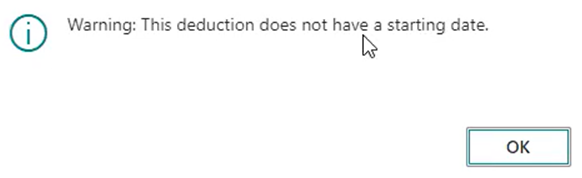 Lorsqu'un utilisateur tente de configurer une nouvelle déduction sans date de début ou de fin, puis tente de quitter la configuration de la déduction, Sparkrock Impact affiche maintenant un avertissement.