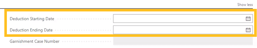 Nouvelles légendes de date de début et de fin dans la fiche de déduction
