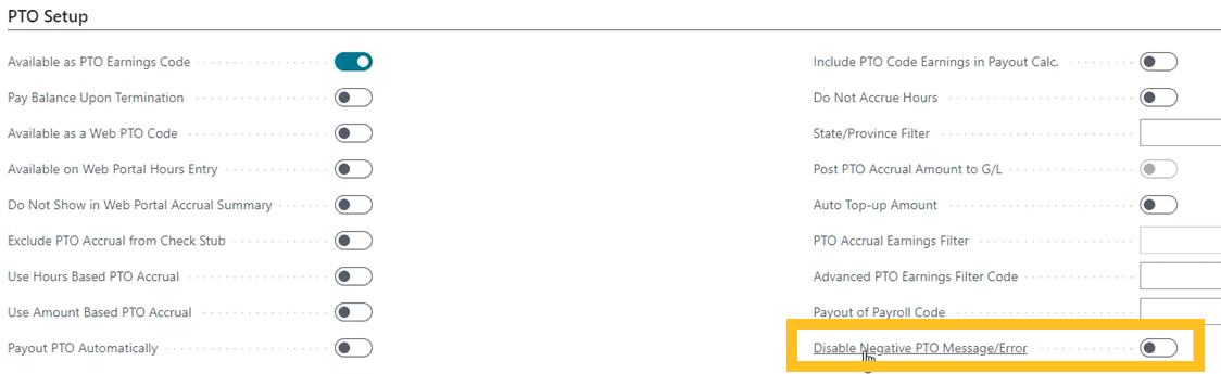 Il y a maintenant une case à cocher dans la fiche CPT pour désactiver l'avertissement Vous êtes sur le point d'avoir des heures CPT négatives. Ce champ peut être activé dans le Fiche de configuration des codes de paie , sur le raccourci Configuration des CPT Raccourci.