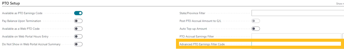 En raison du nombre d'heures qui doivent être filtrées pour entrer dans l'accumulation, cela permet parfois à un utilisateur de choisir un code de filtre avancé pour calculer le nombre d'heures PTO de base qui doivent entrer dans le calcul d'accumulation PTO. Ce code est nécessaire pour que Sparkrock Impact puisse filtrer les heures qui ne concernent qu'un certain état, syndicat, poste, etc.