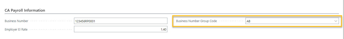 Sur l' Informations sur la compagnie de paie , sur le raccourci Informations de paie canadienne raccourci, cette version introduit un Code de groupe de numéros d'entreprise champ.