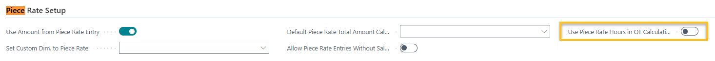 Sur l' Configuration supplémentaire de la paie , sur le raccourci Configuration de la rémunération à la pièce raccourci, cette version introduit un Utiliser les heures de rémunération à la pièce dans les calculs des heures supplémentaires champ.