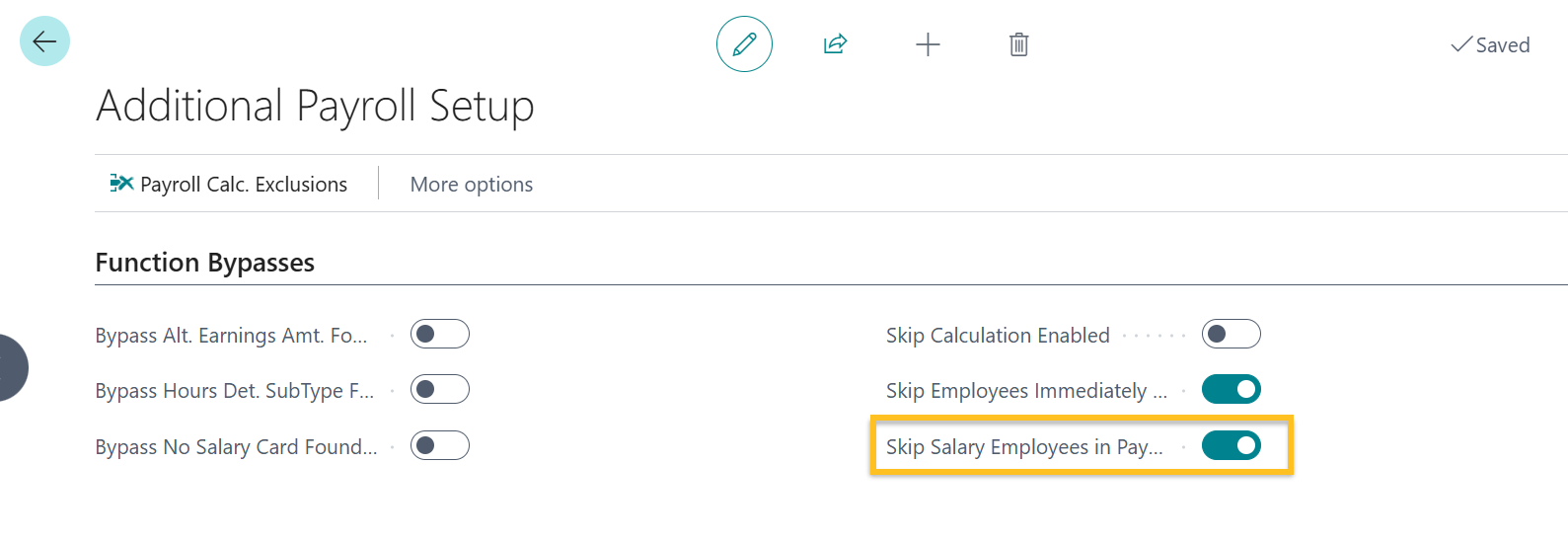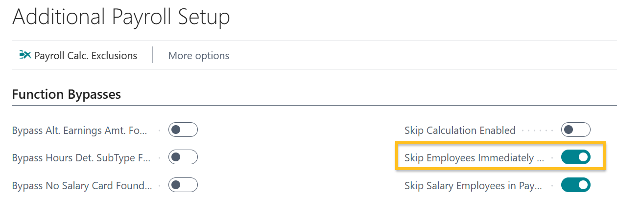 Pour améliorer l'efficacité lors de la création des lots de paie, cette version ajoute des champs au Contournements de fonctions Raccourci de la Configuration supplémentaire de la paie .