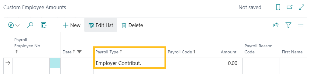 Pour améliorer la flexibilité, dans le Montants personnalisés des employés page, cette version introduit le Type de paie de Cotisation patronale